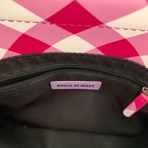 House of Want vegan leather clutch handbag in fuchsia. This chic chain-strapped clutch adds the perfect accessory element to any outfit.