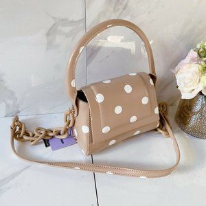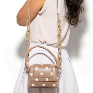 House of Want We Are Chic Crossbody Shoulder Bag Tan Polka Dot Vegan Leather