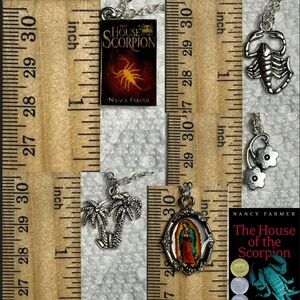 Wear a necklace that tells an entire story, with my handmade literature necklaces! This one depicts Nancy Farmer's amazing YA Sci-Fi novel, House of the Scorpion.