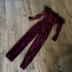 House of CB Salima Black Cherry Velvet Jumpsuit
