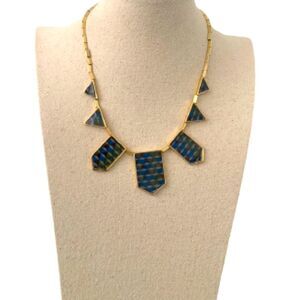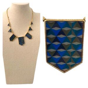 House of Harlow 1960 Bib Necklace – Art Deco Pyramid Style in Blue & Gold