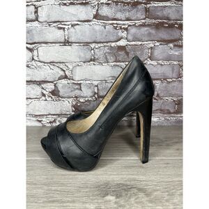 House of Harlow 1960 Black Leather Platform Peep Stiletto Heels Women’s 6.5/37EU