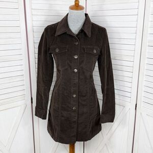 House of Harlow 1960 Corduroy Button Front Mini Shirt Dress Brown Small
