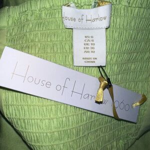House of Harlow 1960 Linen Blend Smocked Back Halter Top in Lime, Women’s 6