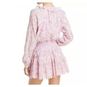 House of Harlow 1960 Revolve Ajay Pink Paisley Ruffled Smocked Mini Dress Size L
