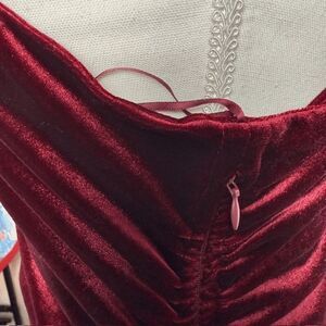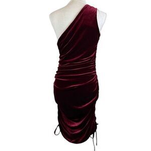 House of Harlow 1960 Revolve Luxe Velvet Ruched Side One Shoulder Dress Small. Excellent condition. See photos for details and unstretched measurements. Shop my closet and bundle multiple items for discounts and one shipping fee! Burgundy Red Dress, Stretch, Side Ruching with Ties to control the length, one shoulder, hidden side zipper, no size tag - see measurements.