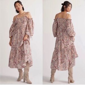 House of Harlow 1960 Teresa Purple Paisley Puff Sleeve Maxi Dress size medium