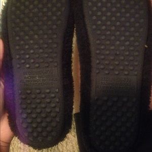 Comfy house slippers. Black. Fits snug around feet. Recommend sizes 5.5-6.5 narrow.