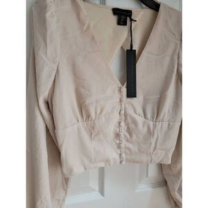 House Of Harlow Ivory Velvet Open-Back Botton Plunge Crop Top S