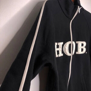 Vintage House of Blues Black White Embroidered "HOB" Spellout Fleece Lined Zip Up Sweatshirt