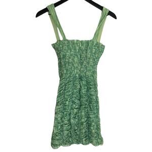 House of CB Cate Ivy Print Ruched Mesh Mini Dress Green XS