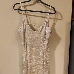 Chic cream satin dress with a luxurious feel. Ideal for elegant events.