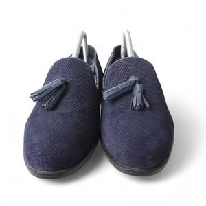 House of Hounds Embossed Tassel Slip-on Suede Loafers Blue / Black Men's 8/41