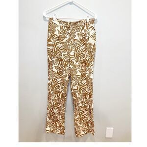 House of harlow tan cream linen blend leaf print pants