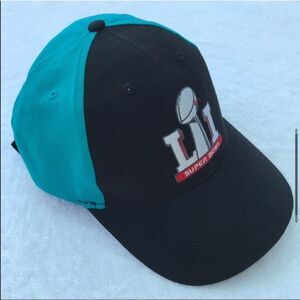 D4 Hat/Cap Houston 2017 China Adult Adjustable Strap with Buckle Super Bowl LI Logo Patch on Face plus HTX on side plus Superstar Volunteer on rear in / Teal Green & Black cap Black Green
