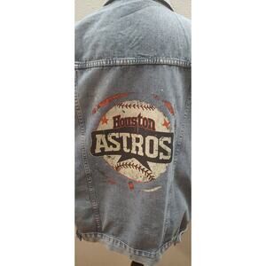 Houston Astros Adult Plus Size Denim Vest Baseball Jean Jacket MLB Original Read