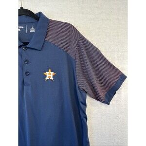 Houston Astros MLB Antigua Polo Shirt Mens Large Blue & Orange Striped Polyester
