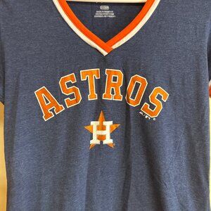 Houston Astros Womens V-Neck T-Shirt By Majestic Fan Fashion Size S Cotton/Poly