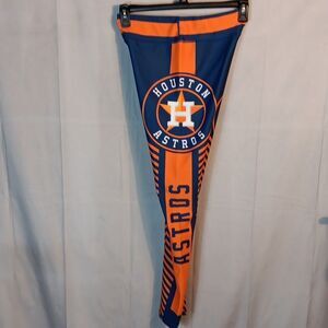 Stylish Houston Astros leggings in blue and orange. Size Large with a stretch waist measuring 14" laying flat an inseam of 28.5" and a front rise of 10". Perfect for fans.