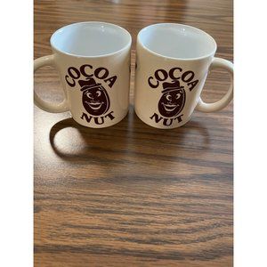 Houston Foods Cocoa Nut mugs set of two. Vintage cottage core. Cream with brown lettering. Printed on both sides. Great pre-owned condition.