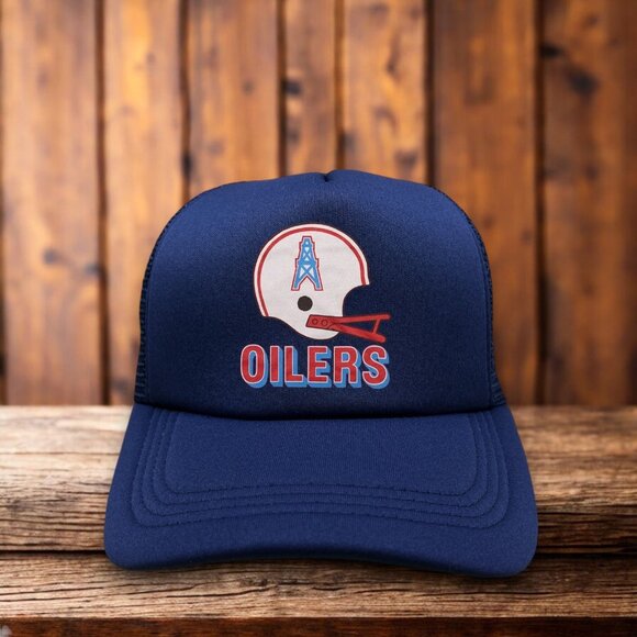 Houston Oilers Defunct Mens Trucker Hat Navy 80s Retro Helmet Logo Football Cap
