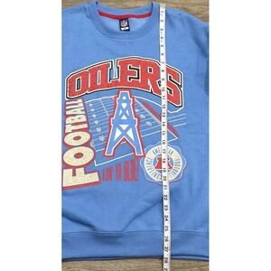The Houston Oilers Tennessee Titans Sweatshirt is a men's medium fleece sweatshirt featuring a graphic print logo. This officially licensed sweatshirt is branded by Ultra GAME and represents the National Football League (NFL) team. The blue sweatshirt is designed for the Regular Season and features the Houston Oilers team logo, making it a perfect piece of fan apparel for any football enthusiast. Made in China, this sweatshirt is a great addition to any fan's collection of sports memorabilia.