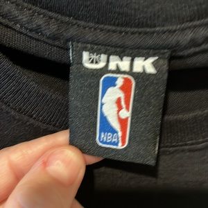 Faded black Houston Rockets t-shirt. Silver/gun metal front logo. Size tag was cut out but is a men’s Small. Unisex