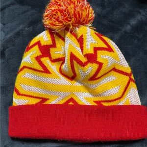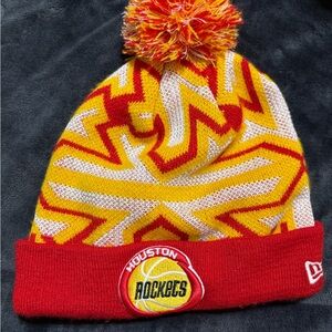 Vibrant beanie with Rockets logo. Red and yellow design. Perfect for young fans.