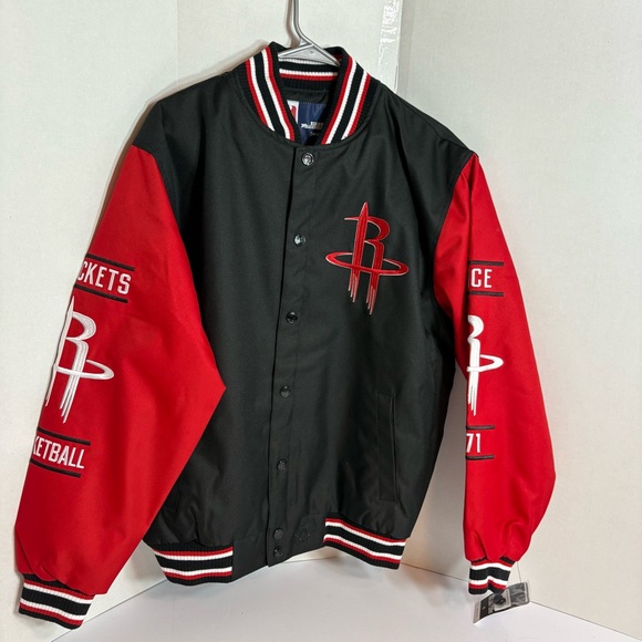 Houston Rockets JH Design NBA Varsity Jacket Men’s Medium Black Red Embroidered