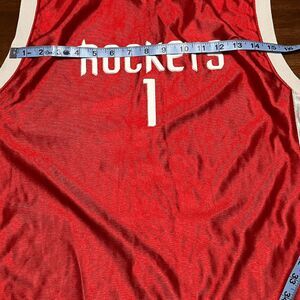 Show your support for the Houston Rockets with this striking red boys' jersey, featuring the iconic Tracy McGrady. It's a high-quality piece, designed to capture the spirit of the game. The jersey is a size Large, ensuring a comfortable fit for most youngsters, and it proudly displays the team's logo, meticulously stitched and sewn for durability and a professional look.Whether you're hitting the court or cheering from the sidelines, this jersey is perfect for any young Rockets fan. It's officially licensed by the NBA, so you can be sure you're getting the genuine article, complete with the highest quality materials and design. Add it to your collection and wear your team pride on your sleeveliterally.