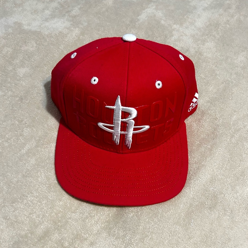 Men’s Houston Rockets Adjustable Hat by adidas. Rockets print on the inside of bill.