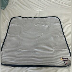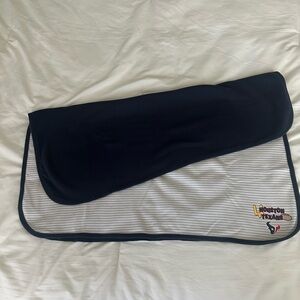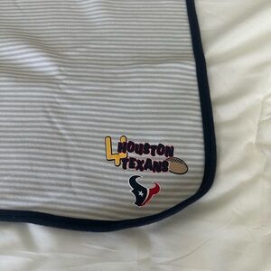 Soft baby blanket with Houston Texans logo. Features a striped pattern with navy trim and back. Good condition Non smoking home