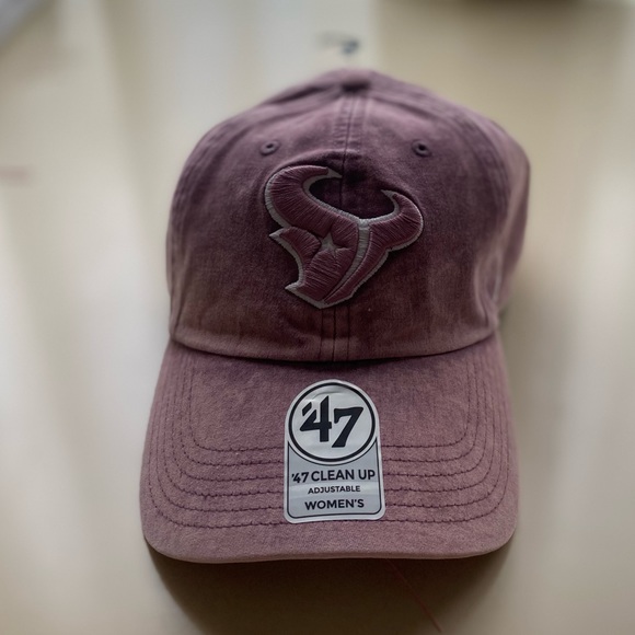 Dusty pink colored Houston Texans Football hat with lining still inside