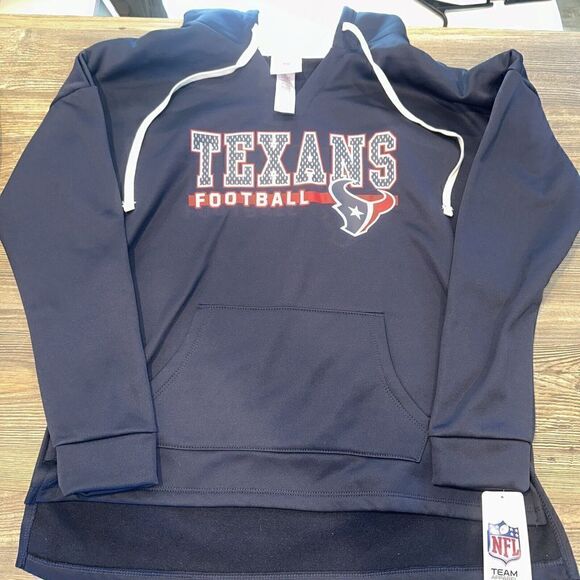 Show your love for the Houston Texans with this officially licensed NFL team apparel hoodie. This blue plush sweatshirt is perfect for football season and features the team name and logo. The hoodie comes in size L and is designed for girls. It's a great addition to any fan's collection of sports memorabilia. Get your hands on this product and show your support for the Houston Texans!