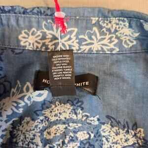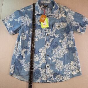 Houston White Floral Button Up Shirt L NWT Blue White Short Sleeve Casual