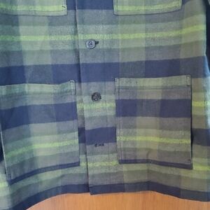 This lightweight shirt jacket features a classic green and black plaid pattern, offering a relaxed fit ideal for layering. Its warm yet breathable material makes it perfect for casual outings or outdoor adventures, ensuring comfort and style in cooler weather.