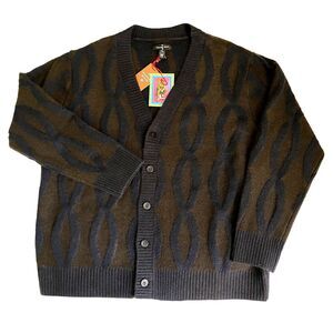 Houston White NEW Cardigan Sweater Cable Knit Button Brown Blue XL XXL Coogi Y2K