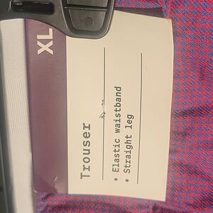 Houston white, Pink & blue pattern, Straight Leg, Elastic Waistband Trousers, size: XL, 100% cotton, machine wash cold, NWT