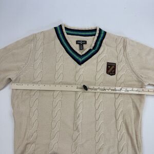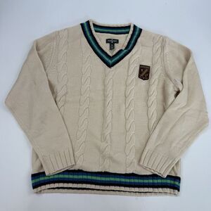 Houston White TARGET Cream Blue Cable Knit L/S V-Neck Pullover Sweater Size L