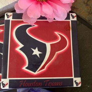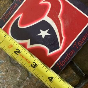NWOT: 4 Houston Texans coasters Each set has 4 with team logo and colors Never used. Been sitting on a shelf Measurements in photos Smoke free home