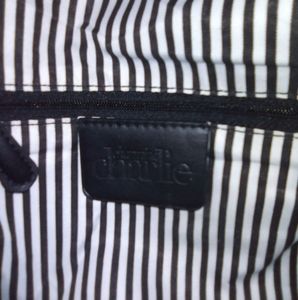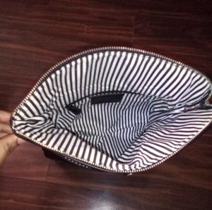 Very clean, spacious black & white bifold clutch purse with a sleek striped pattern inside including 3 pockets, could be worn day or night and also has hooks for an accent strap to be added.