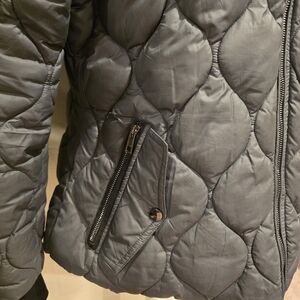 How Dare U Pocketed Zip Up Puffer Jacket with Removable Hood Thumb Hole Gray 1x.