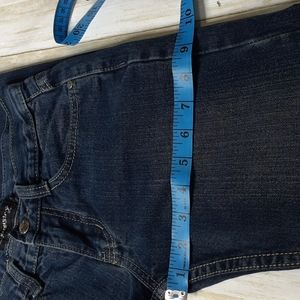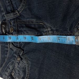 How I measure Jeans I laying them flat on a table use a fabric measurement tape PLEASE MEASURE YOUR BEST FITTING JEANS TO GET YOUR MEASUREMENTS THESE ARE NOT YOUR BODY MEASUREMENTS 1 At Waist 13 in x 2 = 26 in Best for Sizing * Around Inside Waist Just Added not all lists have this Waist Measures before only show Across Top Just Ask I'll measure if you need it. 2 is Hip 17 in x 2 = 34 3 is Rise 8 in 4Thigh @ Crotch Cross to outside seam 9 1/2 in 5 is thigh 8 1/4 in x 2= 16 1/2 6 is beginning of Inseam measurement 6 photo is end of Inseam 25 1/2 in 8 is cuff 6 1/2 in 9 is beginning of outside seam 10 is end of outside seam 34 in 11 is begin of Back rise 12 end of back rise 11 in 13 is Knee (half Inseam up from cuff) 7 in Knee and Thigh@Crotch Measurements just added so not all list have these Will measure if needed