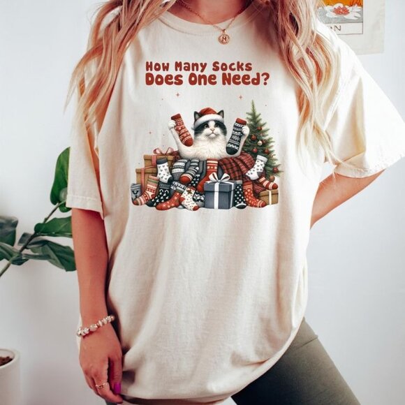 How Many Socks Does One Need TShirt, Meowy Christmas Cat