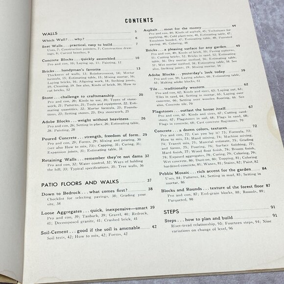 This book offers instructions with 314 illustrations for building walls, walks, and patio floors using various materials.