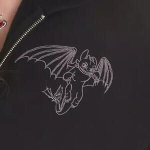 This hoodie is flyin' outta Berk and straight into your wardrobe! From How to Train Your Dragon. Featuring Toothless' adorable eyes embroidered on the hood with 3D detailing for his ears and scales. Designed with dragon wings stitched onto the sleeves. Complete with a Toothless embroidery at the chest. Comes with a front zipper, thumbholes and pockets.