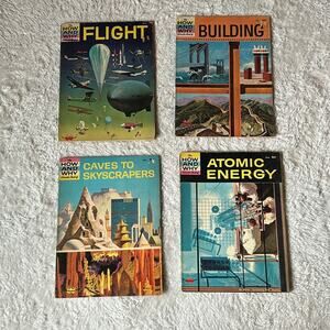 How and Why Wonder Book - lot 4 Building Atomic Energy, Flight, Caves VTG 1960s