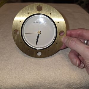 Enhance your home decor with this Clock. Its sleek design and classic gold finish add a touch of sophistication to any room.Howard Miller clock. Is used condition. works great. Takes 1 AAA battery. No apps, message here only. Ask is, all sales final.