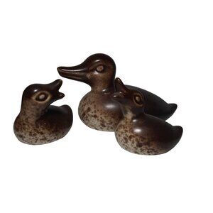 Howard Pierce Ducks Mama and Ducklings Brown Spotted 3 pc California Pottery
