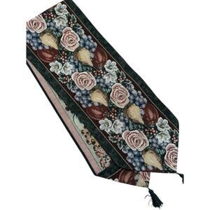 Stunning canvas tapestry table runner that feature holly with berries, apples, grapes, pears and flowers